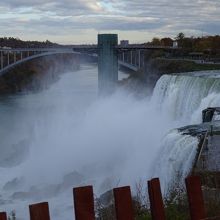 カナダ側のように滝を正面から眺めることはできませんが、滝のすぐそばまで行くことができ、すごい迫力の滝を見る事ができます。