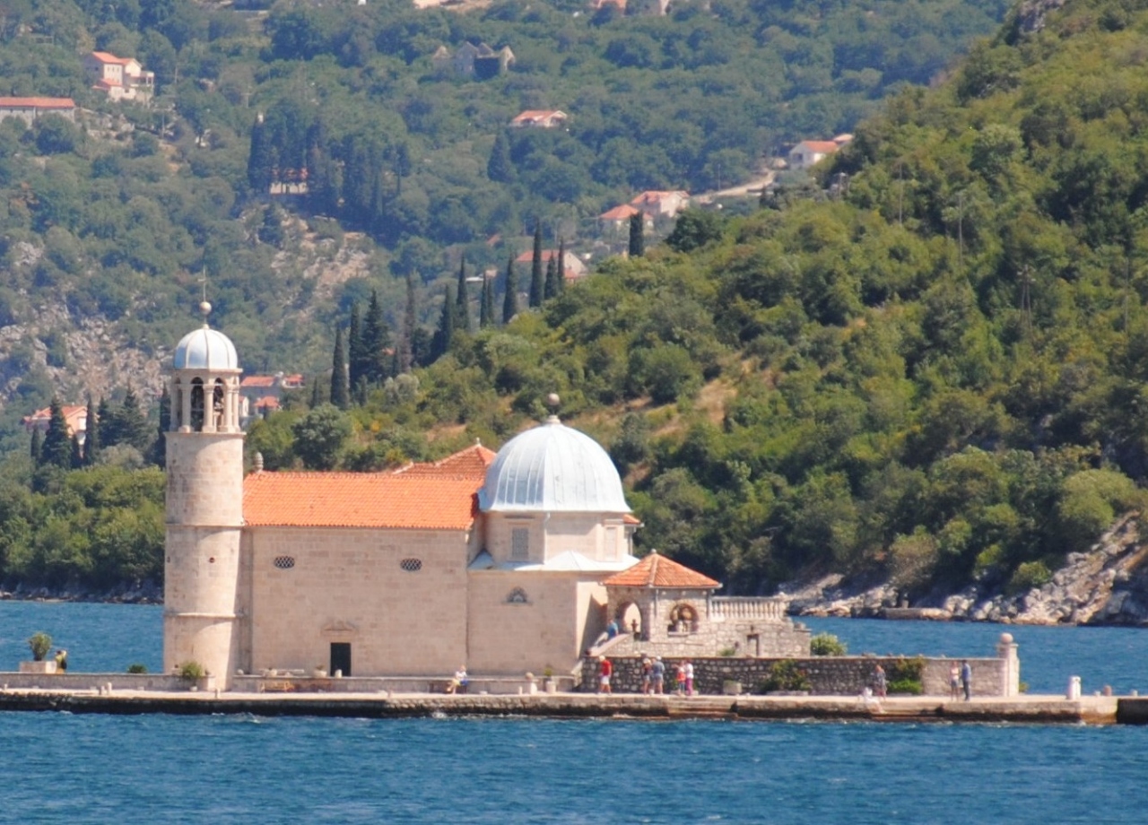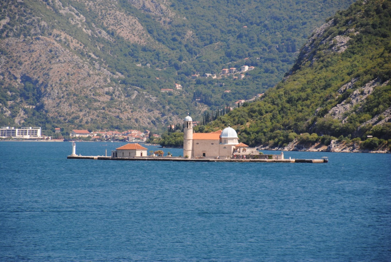 15世紀、漁船が岩礁にぶつかり大破。しかし漁師は一命をとりとめました。そのとき漁船の漁師はここで聖母のイコンを釣り上げており、感謝の意を込めその岩礁に岩石を積み船を沈め人口島をつくり、そのイコンを安置するための教会を建てました。