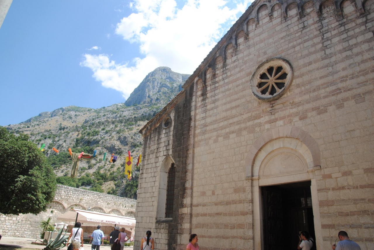 聖ルカ広場から東に少し進んだ所にある、コトル最古の教会である6世紀の教会跡地に建つ聖母マリア教会です。