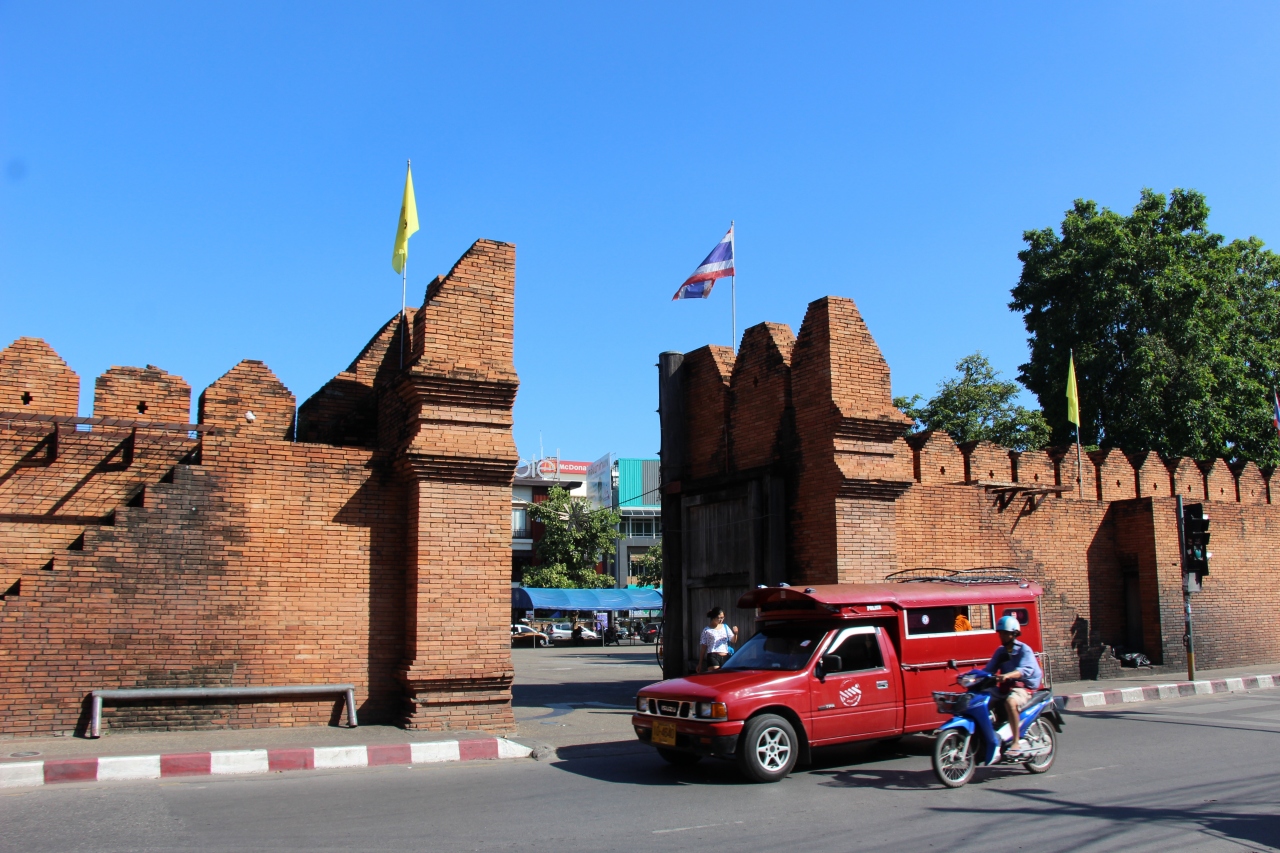 チェンマイ観光の起点です。ここよりサンデーマーケットが伸びていて、開催時にはそれはもう大変な人だかりになります。ついでにバスターミナル行きのソンテオもここから出ていますが、人が集まらないときは100バーツでチャーター料金になります