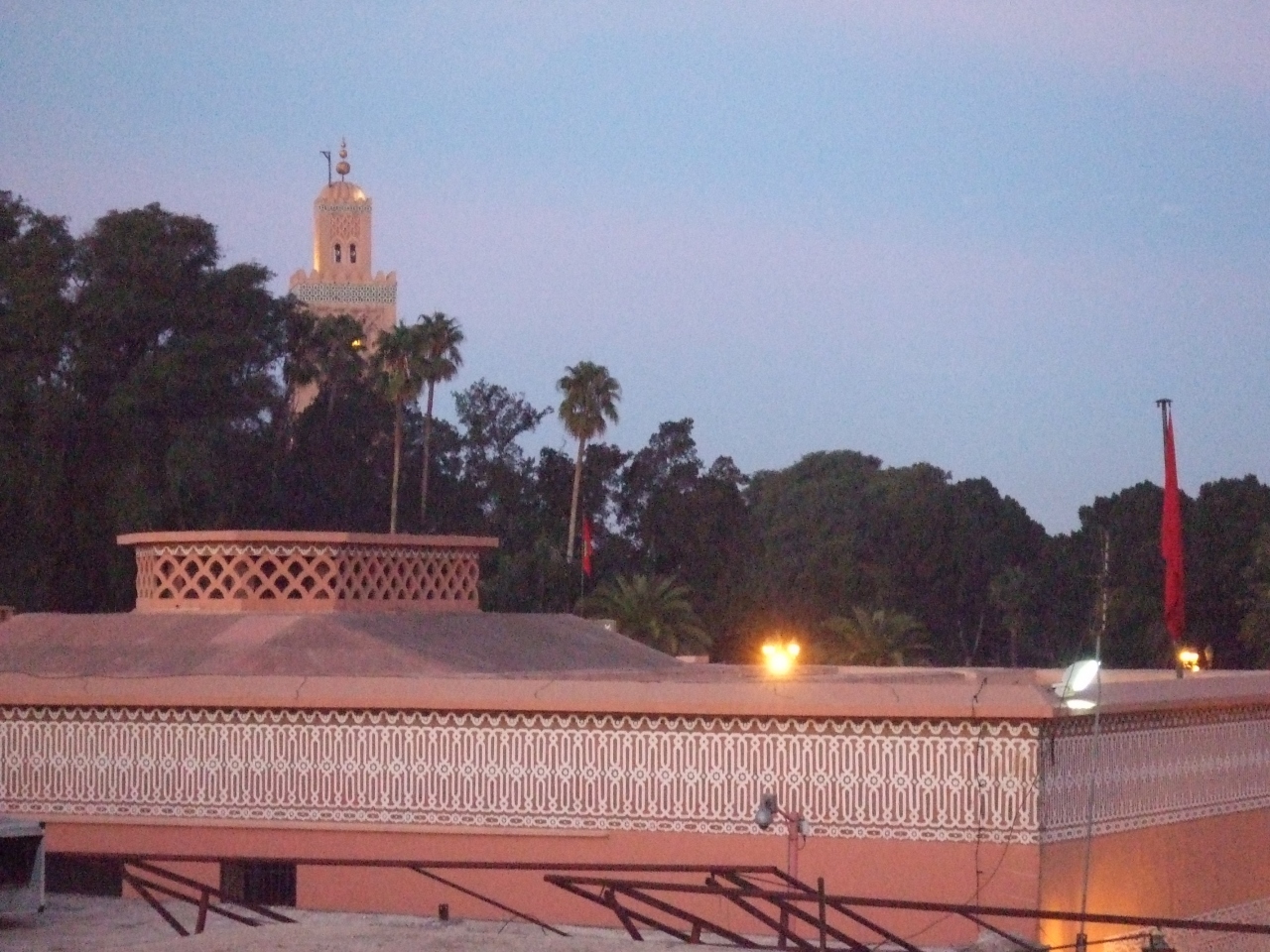 高さ77mのミナレットは旧市街のシンボル。周囲になじむマラケシュピンクの塔は、よく見るとうす緑のタイルと細かい装飾がとても美しい。残念ながら中には入れませんでした。フナ広場の端にあり、駅に向かう時はこの近くの公園あたりでタクシーをひろいました。