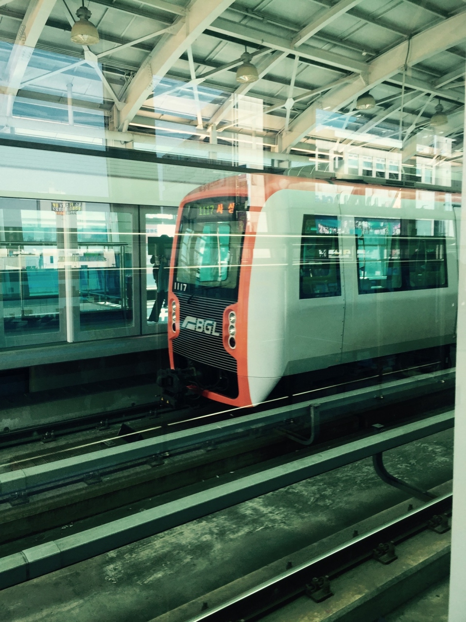 空港から市内への移動に利用しました。空港から外へ出て横断歩道を渡ってタクシー乗り場を越え、右手にまっすぐ、国内線方面へ向かうと駅があります。まだ新しく綺麗な駅です。