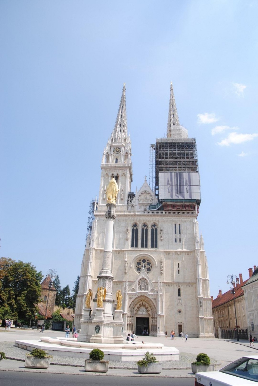 大きな尖塔が2本立つザグレブのシンボルである大聖堂です。