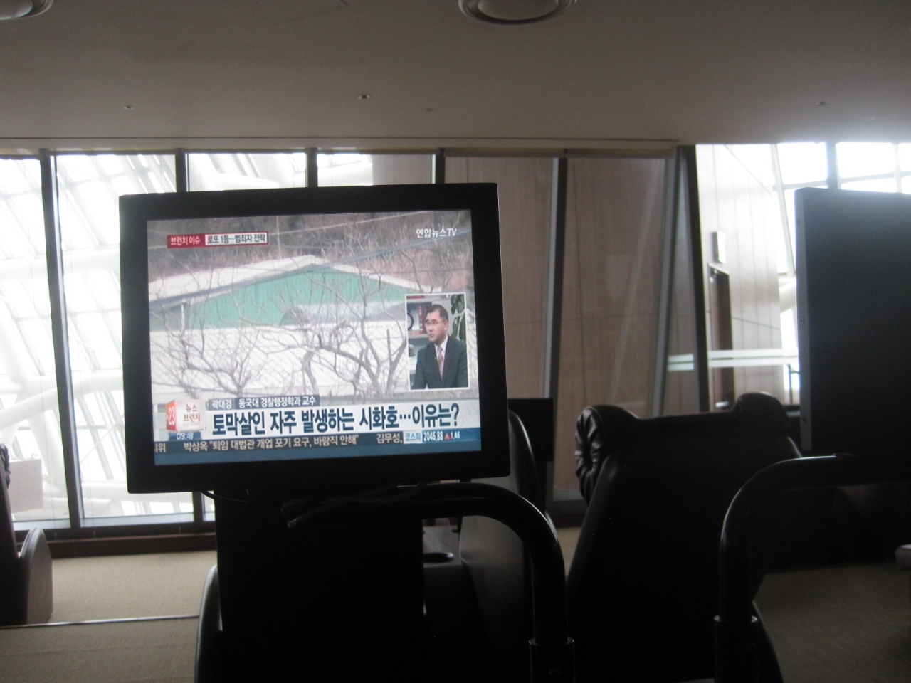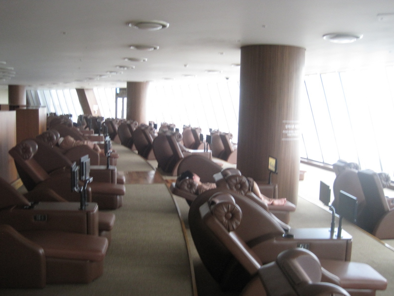 韓国ではあまり見られない休憩所のTVモニター付個別ソファなども完備。