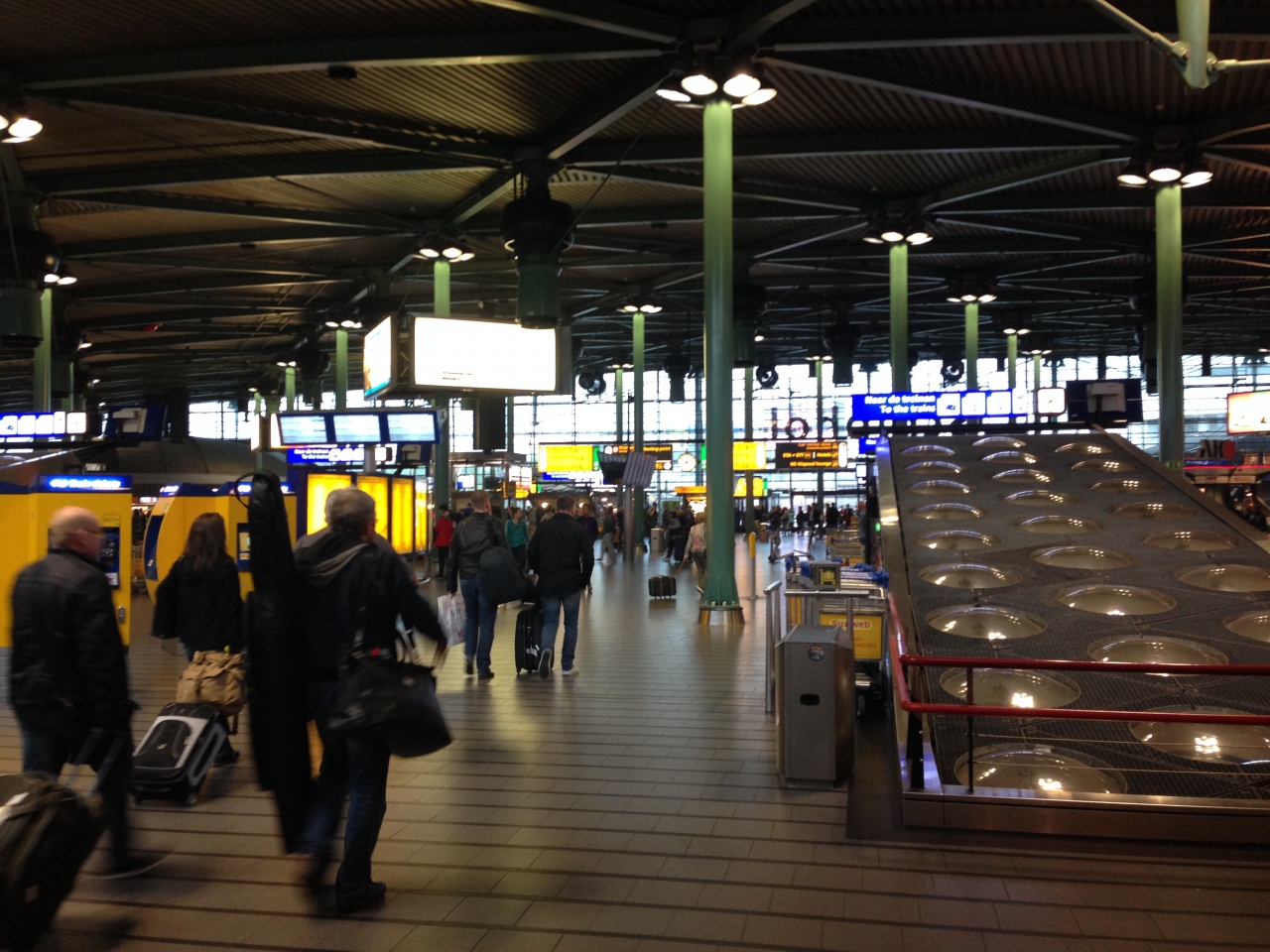 到着時、全体に照明が暗くて驚きました。市内へ出るには、鉄道を使うのが便利です。税関を出た大きなフロアに駅へ降りるエスカレーターがあり、その付近に沢山切符の自動販売機があります。切符はクレジットカードで簡単に買えます。ランド側にもけっこう大きなショッピングエリアがあり、帰国前におみやげを買うのに便利です。