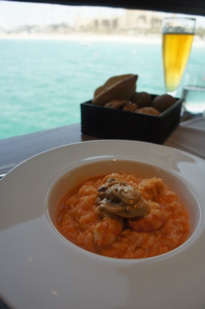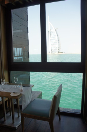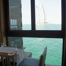 アラビア湾に浮かびバージュ・アル・アラブを望む水上レストランです。アルカスルに滞在していてせっかくなのでドバイ最終日のランチで利用しました。ジュメイラフレーバーのハーフボードのバウチャーが余っていたので+180AEDのランチをオーダーしました。味はとてもおいしかったですが、バウチャーを使って前菜とメインとデザートのコースで+180AEDでのランチは少し高いように感じました。もう少しリーズナブルなコースもあるのかもしれません。ロケーションは最高です!