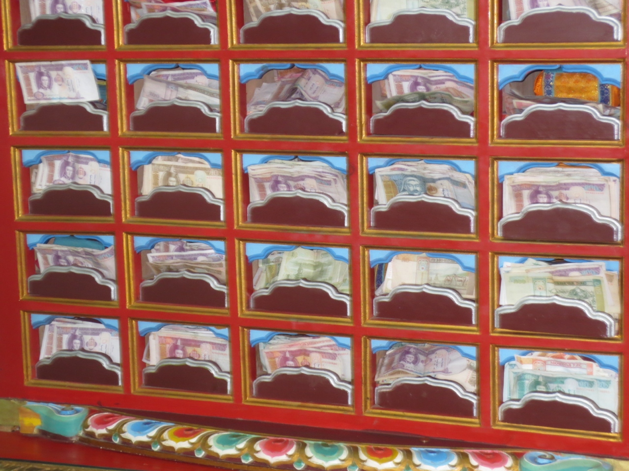 建屋内の彩色が美しいマニ教の寺院でした。途中登る坂に仏教の教えが多数の看板になっていて看板を見るだけで徳が積めて、マニ車(ここには結構でかいのがありました)を回すとお経を唱えたのと同じ効果があるという、ガイドいわく大変コンビニエンスな寺院ですが、登ると疲れます。