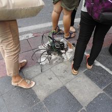 表の歩道にあった電柱?は根元からなくなっているようで、少し爪痕が残っていました。