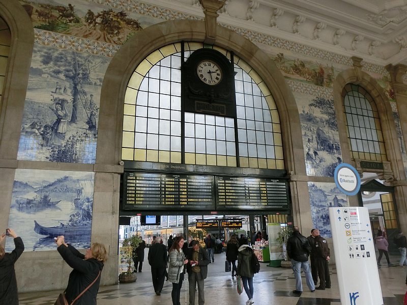 近郊電車が発着する現役の駅ですが、駅として利用するよりもその美しい装飾をご覧になる方が多いと思います。装飾タイルで彩られた壁画は歴史上の重要なシーンを表現したもので、エンリケ航海王子などが描かれています。