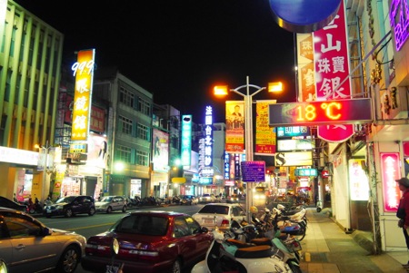 駅から市街地中心へとのびる道です。台湾は、街ごとにだいたい一番大きな道には“中山”ってついてますよね。さして観光スポットがあるわけではありませんが、本屋さんがあったり、パン屋さんがあったりと地元の人たちがどのようなものを買っているかを垣間みることができて楽しいです。駅方面から夜市に行くときに通る道です。