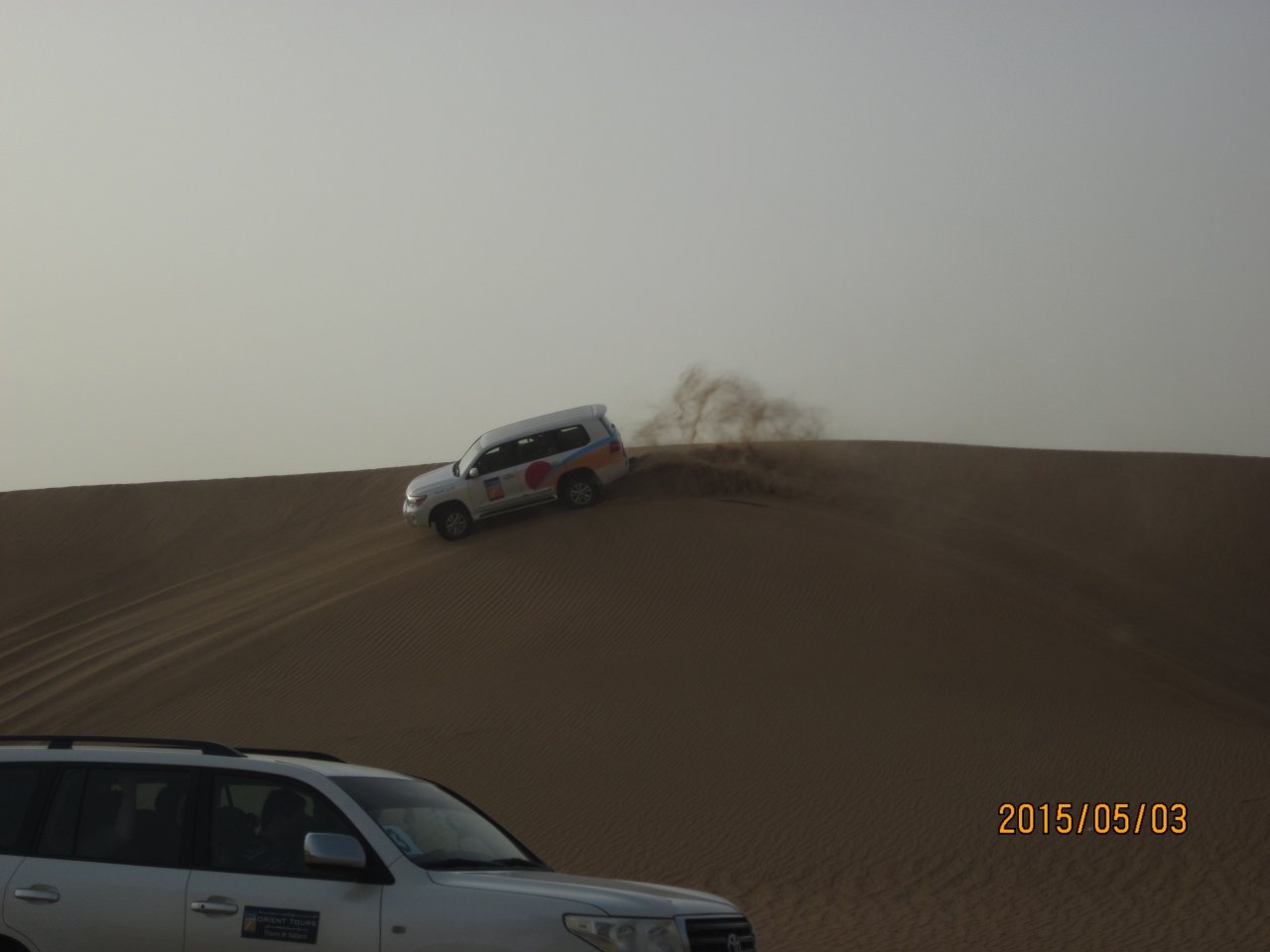 市街地から砂漠に入ると、4WDの車のタイヤの空気を抜き、いよいよ砂漠のドライブが始まります、