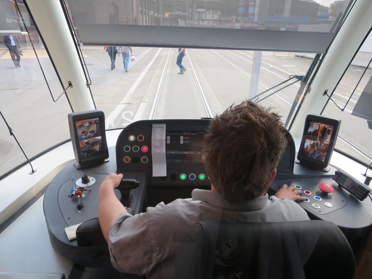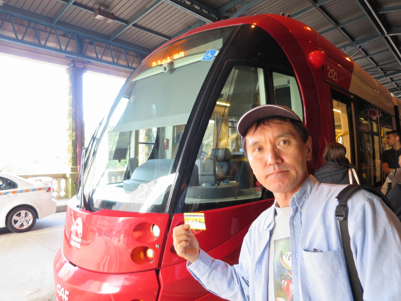 セントラル駅からは、たくさんの人が乗車します。しばらくは、路面電車のように町中を車と一緒に走ります。乗っているだけで観光気分ですよ!