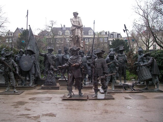 可動式になっている銅像が、夜警の絵画と同じような順番と位置で並べられていました。