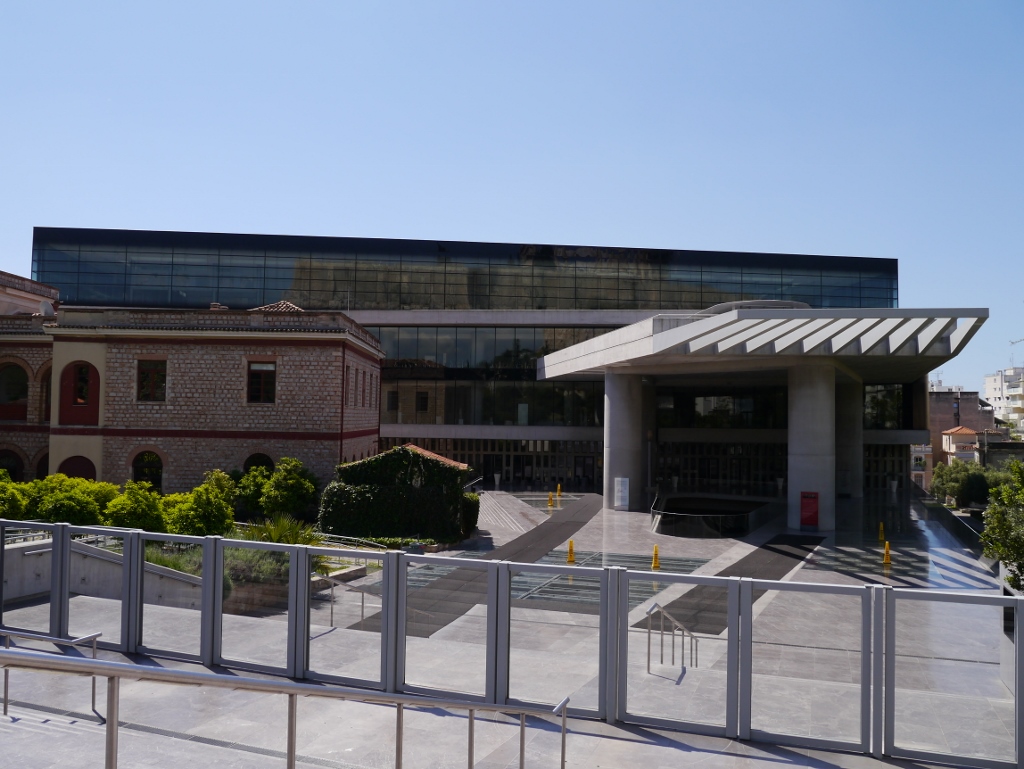 新アクロポリス博物館では、アクロポリスで発見された出土品を展示しています。その広さは14,000平方メートルにもおよび、展示品は4,000点にもなるとのことです。訪問日がちょうどメーデーで休館日となり、残念ながら見学ができませんでした。