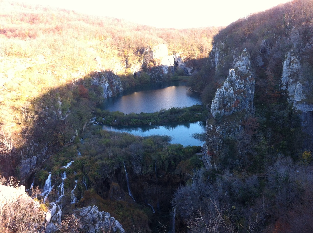 クロアチアを紹介する表紙にあったプリトヴィツェの湖。その写真撮影のため紅葉の季節に合わせ、ザグレブから朝早くバスで向かいました。降りた停留所からもどるように公園内を歩き、撮影ポイントを探しました。午後、陽が傾き始めた頃、ようやく見つけました!