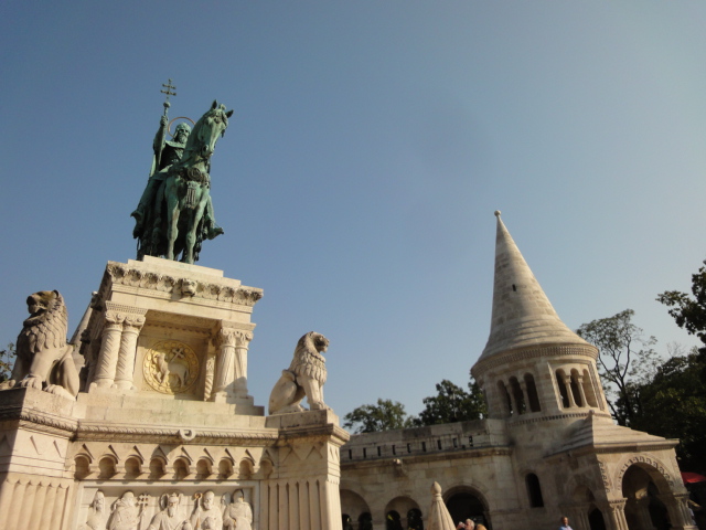 漁夫の砦の近くにあって、立派な像です。ハンガリーの重要な人物であるということが、この銅像からも、聖イシュトヴァーン大聖堂からも、伝わってきます。観光のスポットなので、周辺に人がおおぜいいて、すごく賑やかです。
