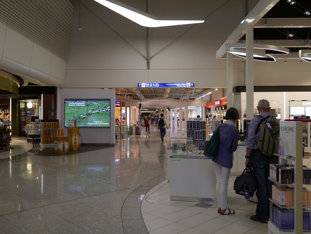 アテネ国際空港は、メトロが乗り入れており、市内への移動がとても便利です。空港の向かいに駅舎があり、いったん空港の外へ出て1つ通りを渡ると、そこが駅舎です。アテネの中心であるシンタグマ広場まで、乗り換え無く行けます。