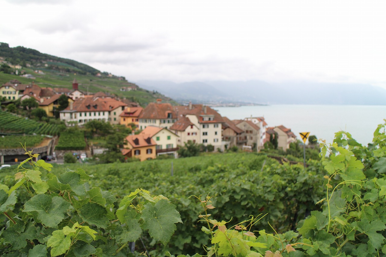 ここから登って行く形でぶどう棚の中を散歩できるコースがある。上に行くとぶどう畑とレマン湖を一望できる。天気が悪くても結構眺めが良かった。