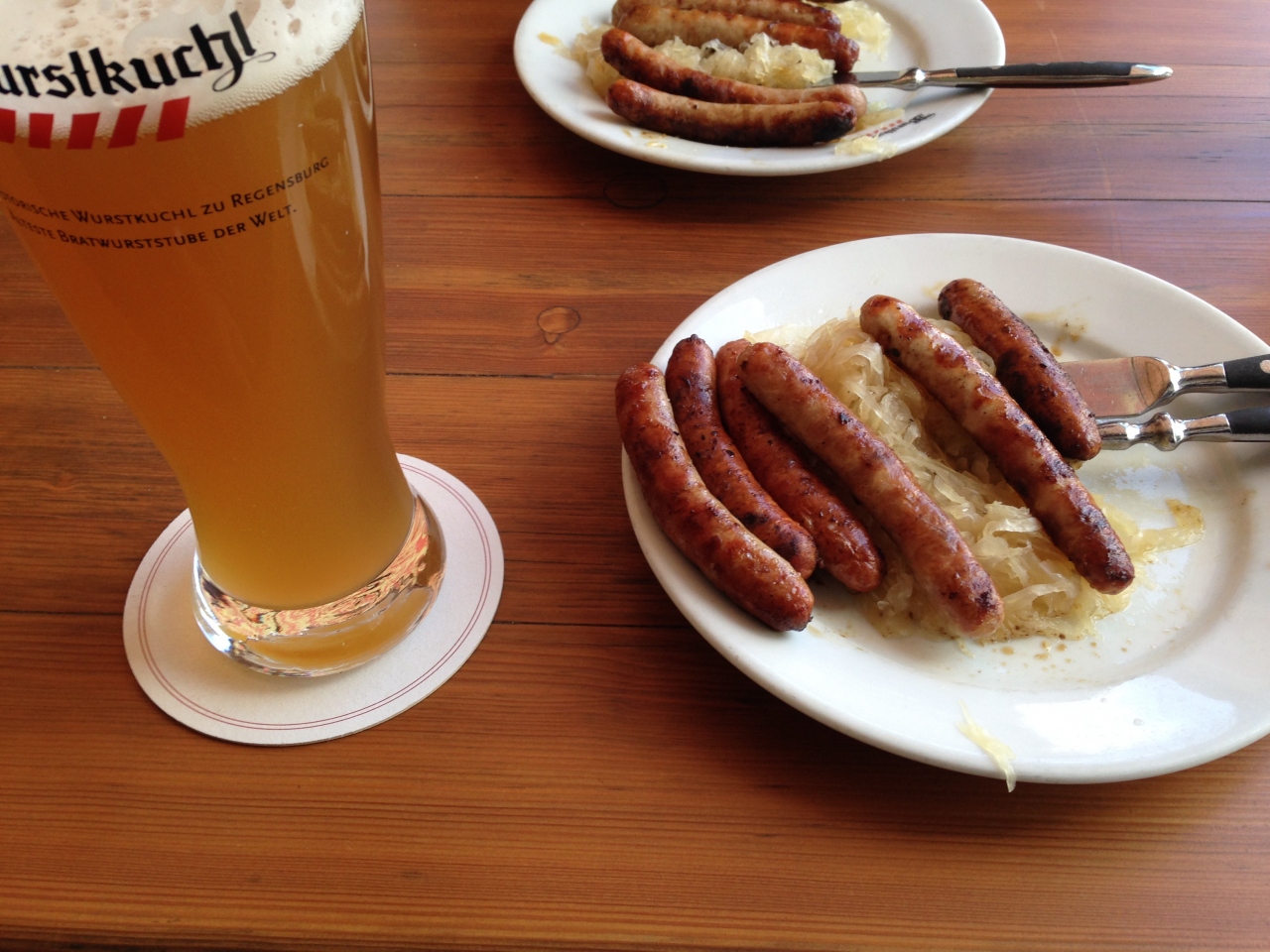 旧市街観光の途中で立ち寄る。ドナウ川に接したところにあり、石橋の近く。観光客が多いので、すぐに気がつく。ソーセージ自体は小ぶりで、長さが不揃いで手作り感があり、おいしい。もちろん、ビールとセットでいただく。