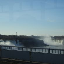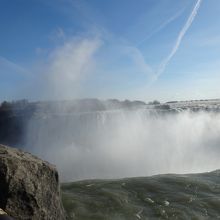 カナダ滝は、近くから見えます。アメリカ滝より大きく迫力があります。水流は、早く水量も多いです。写真スポットも多く、多くに人が、カナダ側のカナダ滝の写真を撮っています。もちろん対岸のアメリカ滝の写真も撮れます。天気がいいと虹も見えとても綺麗です。