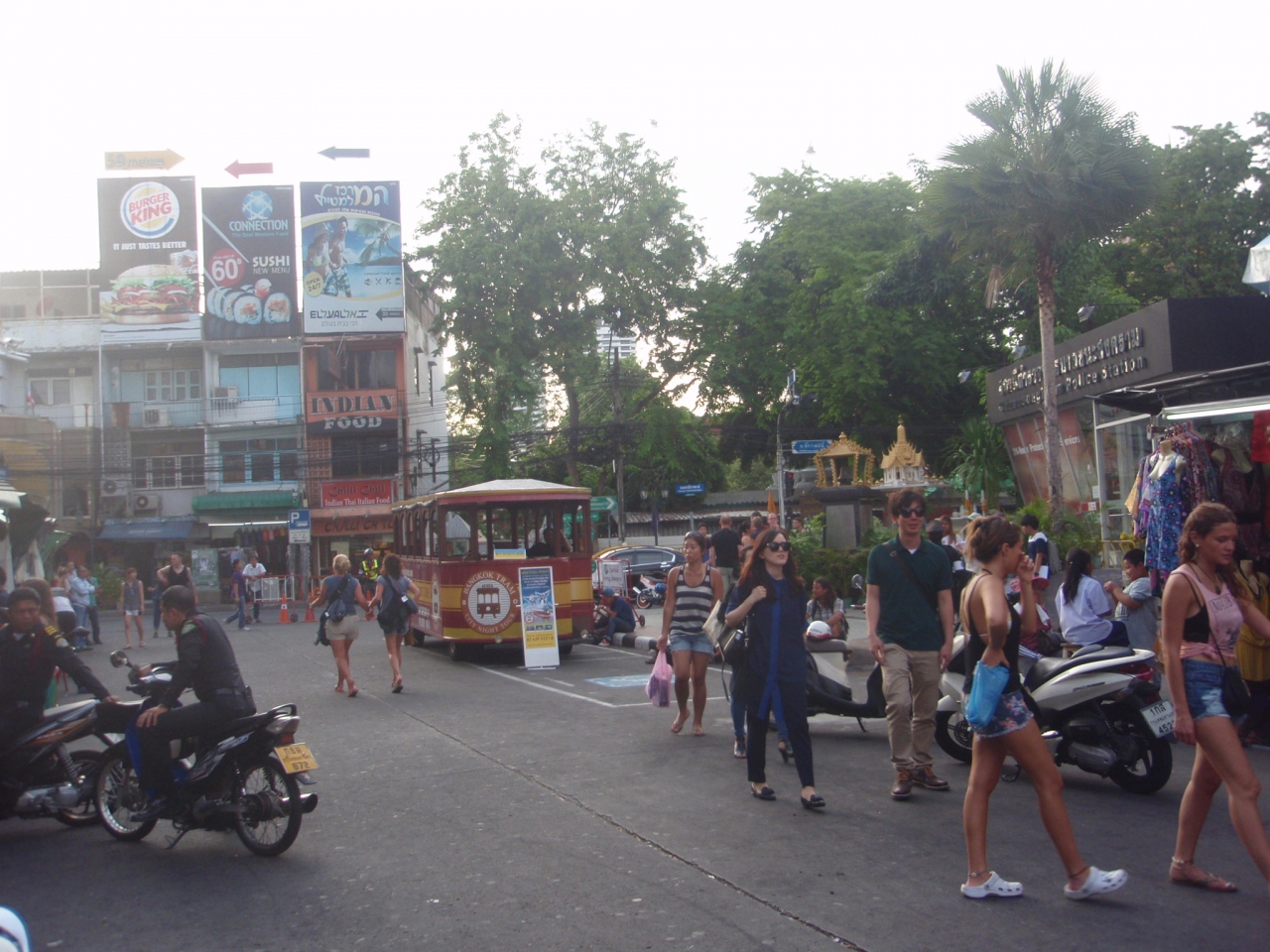 バンコク中心部からのアクセスが悪いと聞いて、水上バスで向かってみた。泊まりがスクンビット駅周辺だったので。船着場の番号13番で降りるとカオサンに行ける、と水上バスの人が言うのでそれに従ってプチ舟旅。船着場から徒歩15分前後でカオサン通りについた。あこがれの聖地だったが、日中に訪れた為か不明だが、食べ物屋さんはタッパイ屋が数えるくらいしか見当たらず。確かに欧米人の姿が多く見受けられたが、あこがれの風景は、もう、昔の話なのかもしれない。泊まる以外では、話のタネに一度見ておけばよいかな?と感じた次第。