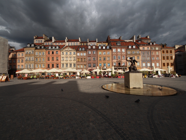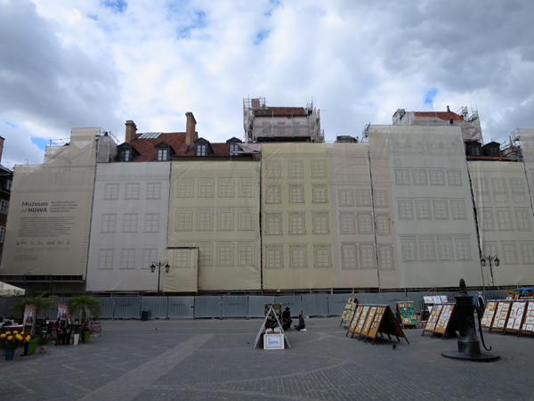 ヴロツワフやクラクフの旧市街と比べると、こじんまりとしています。また、広場を囲む四方の建物の一部は工事中のため窓の絵が描かれた幕がかかっていたり、夕方は日の当たらない場所も多く、あまり活気のない感じで雰囲気的に少しがっかりしました。