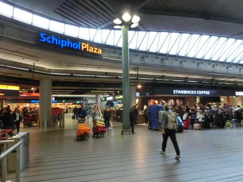 スキポール空港に隣接したショッピングモールです。手荷物受取所から出ると直結しているので、空港の一部のように見えますが上記のほうが正確でしょう。アムステルダム市内に鉄道を利用する場合、スキポールプラザを抜けていく構造になっています。
