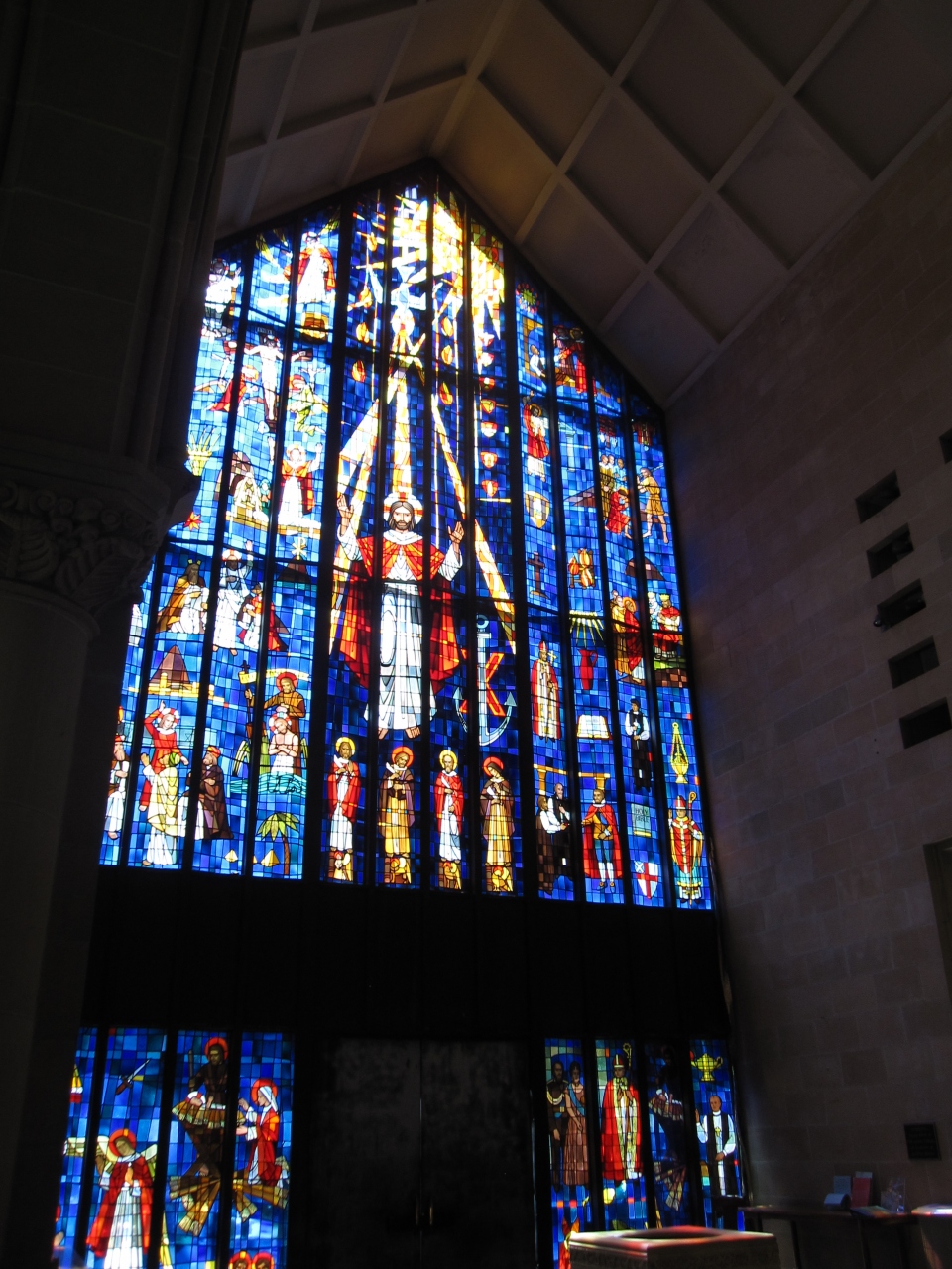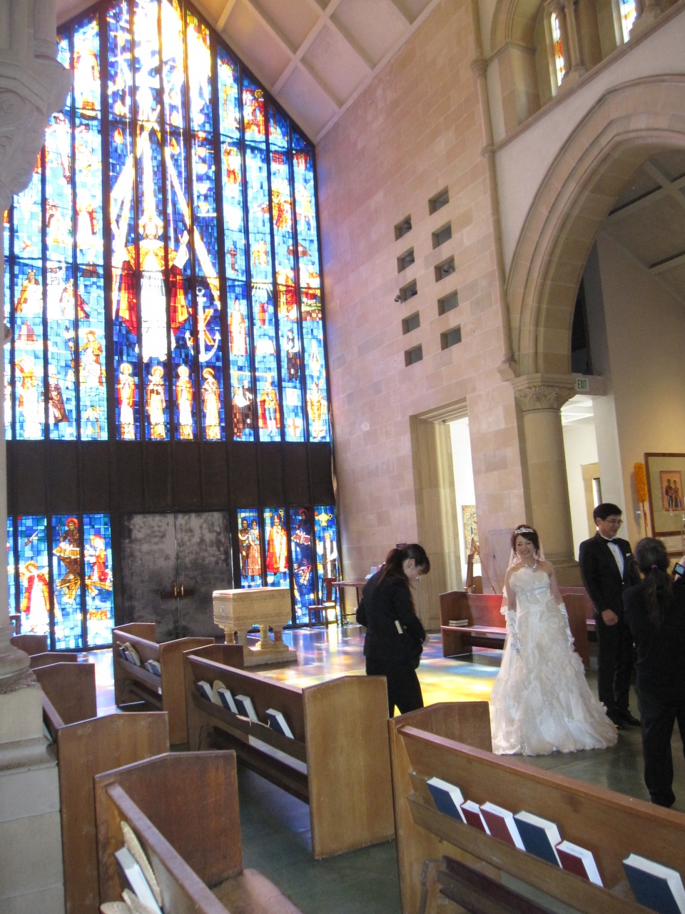 二男夫婦との旅行でしたが、4日目午後に老夫婦だけで3時間ほどダウンタウンに行ってきました。ワイキキからからタクシーでセントアンドリュース教会に行き、帰りはアラモアナセンター行きのザ・バスを利用しました。丁度、教会では日本人の結婚式が行われており内部全体を見る事はできませんでしたが、荘厳な雰囲気があり十分に満足できました。この教会のステンドグラスは有名ですが、サ―フボートに乗ったキリストは確かにありました。本当はサーフボートではなく、光の上にキリストが乗っているのが本当のようです。正面ステンドグラスは3ブロックに分かれており、左側の上部右端にあります。確認してください。