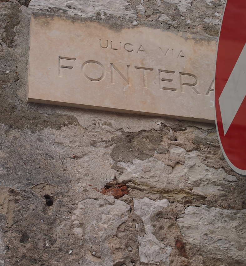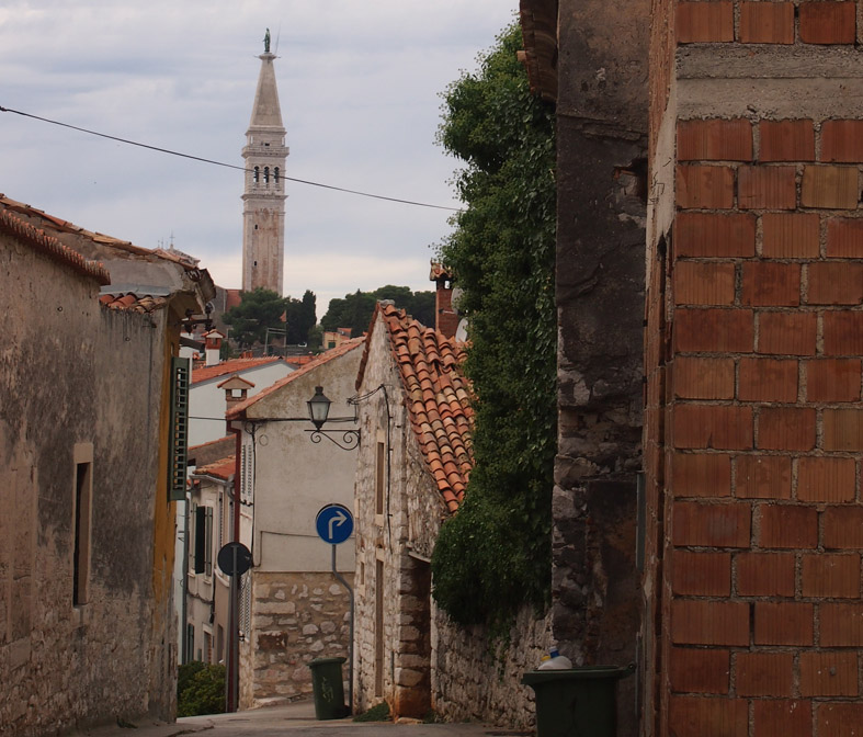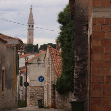 フォンテラ(Fontera)通りは聖エウフェミヤ教会がある旧市街の岬から東へ行った高台にあります。通りの両サイドはイストラ半島特有の白っぽいレンガの建物が並んでいます。振り返ると聖エウフェミヤの鐘楼が通りの間から望めます。