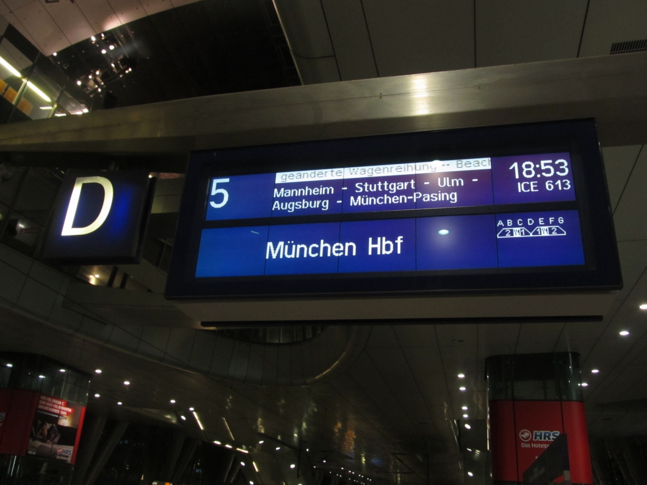 ドイツ鉄道の空港駅は,近距離電車と長距離電車のホームが大きく離れていて,長距離電車のホームまでは第1ターミナルから20分見ておく必要があります。
