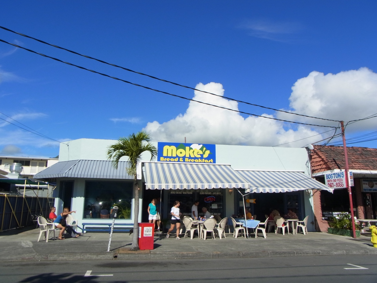 モケズで朝ご飯を食べるために7時前にワイキキを出発してレンタカーを飛ばしてカイルアに向かうと、前日の昼過ぎの日本人観光客だらけな街並みは一転し、ローカルの方々ののんびりとした朝ご飯タイムにお邪魔することが出来ました。