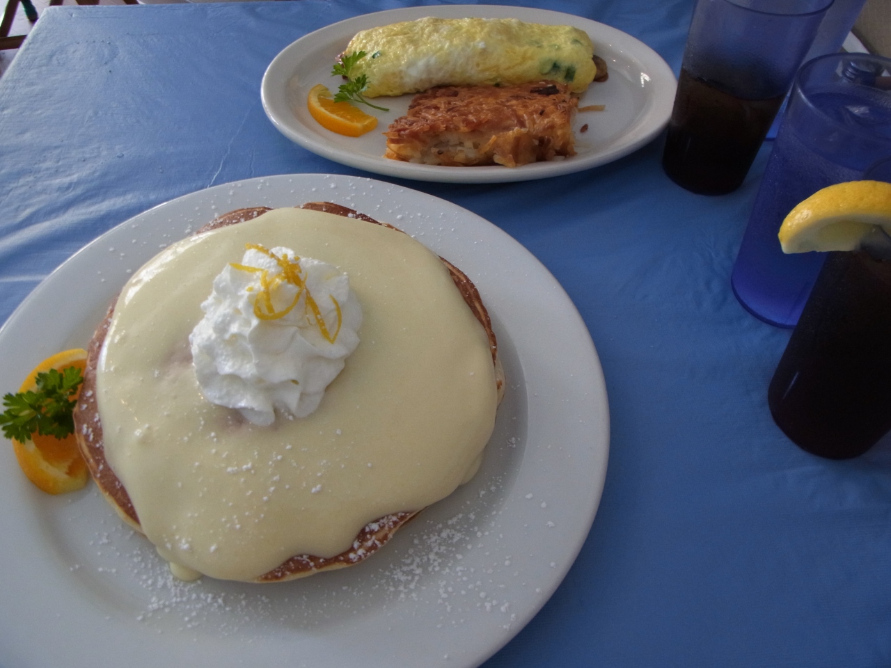 雑誌で一目惚れしたリリコイパンケーキは私の安いカメラで撮ってもフォトジェニックだし、オムレツも付け合わせのハッシュブラウンも最高。