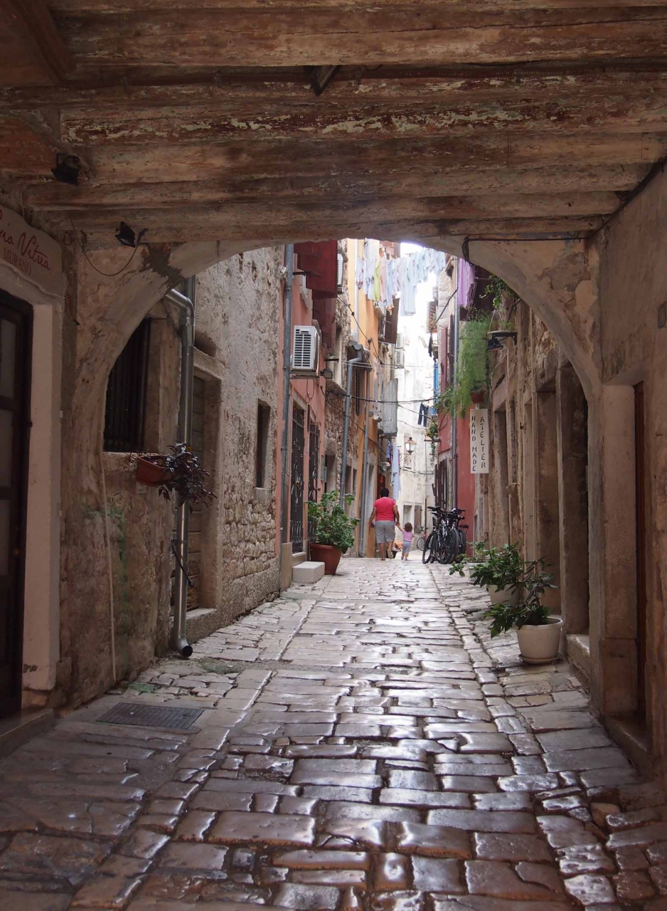 アーケードをくぐるロヴィニ旧市街の生活の路