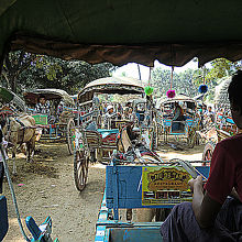 アクセスするには、船に乗って、村の入り口へ行き、馬車で各遺跡を1~2時間程度回る必要があります。ただ、道が結構な悪路なので、馬車は短時間とは言え、結構つらいです。