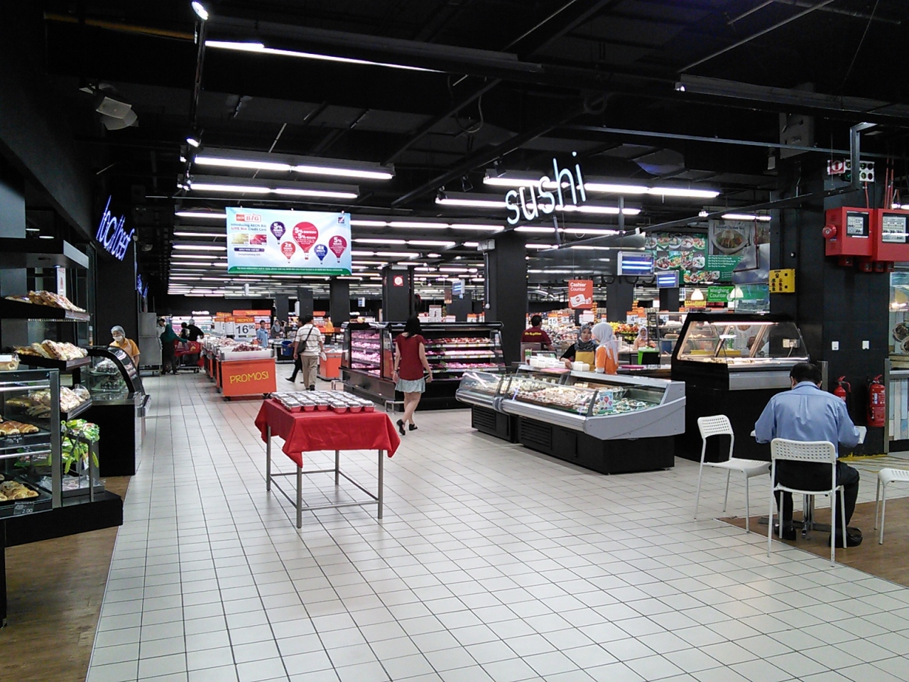 でイオンビッグは地下1階にあります。デパートの中にあるデパートといった感じでイオンビッグの中にスーパーやホームセンター、衣類、家電、コスメ、薬売り場があります。ゲームセンターまであるのには驚き。スーパーも十分広く値段も安いと思います。入口近くにはミニフードコート、デリコーナーもあり大きなチキン入ったチキンライス“弁当”が4.1RMで売られていたので思わず買ってしまいました。なかなかいいです、イオンビッグ。