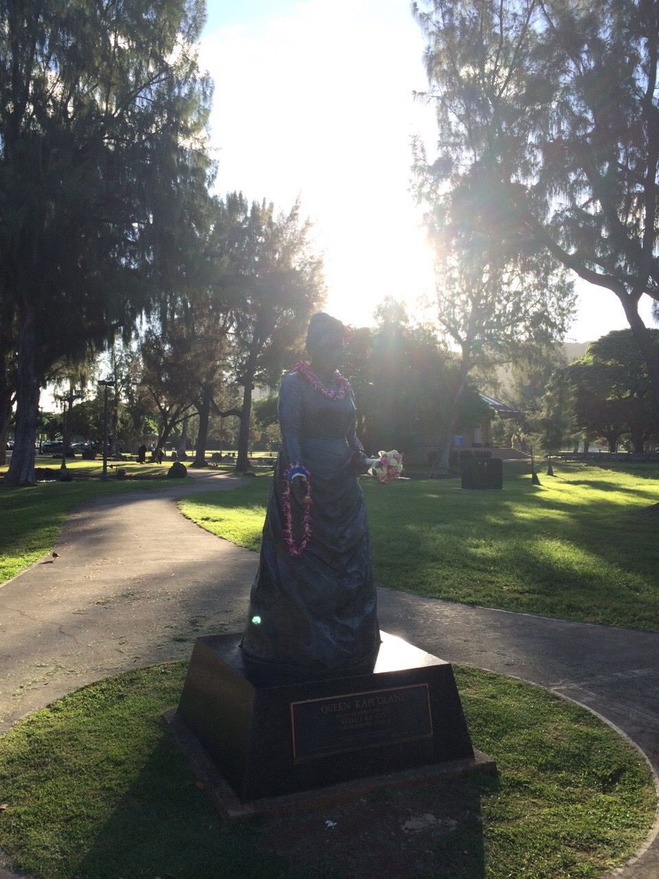 公園の西の入口には名前の由来となった『カピオラニ王妃』の像が建てられてこの辺り一帯を見守っています。