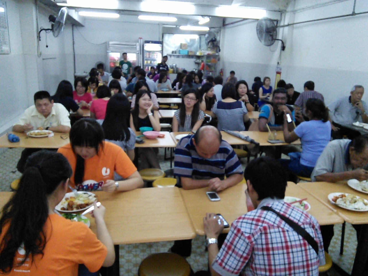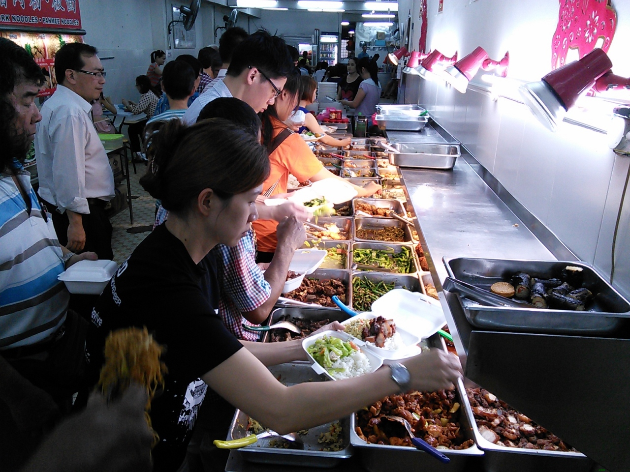 チャイナタウン、ペタリン通りにある中華食堂。Hotel Ocean 77の1階部分です。この食堂何がすごいかというとバットに入れられたおかずの種類の多さ、昼時の混雑ぶり、安くてうまい!の三拍子?まさに繁盛店のお手本のような店です。