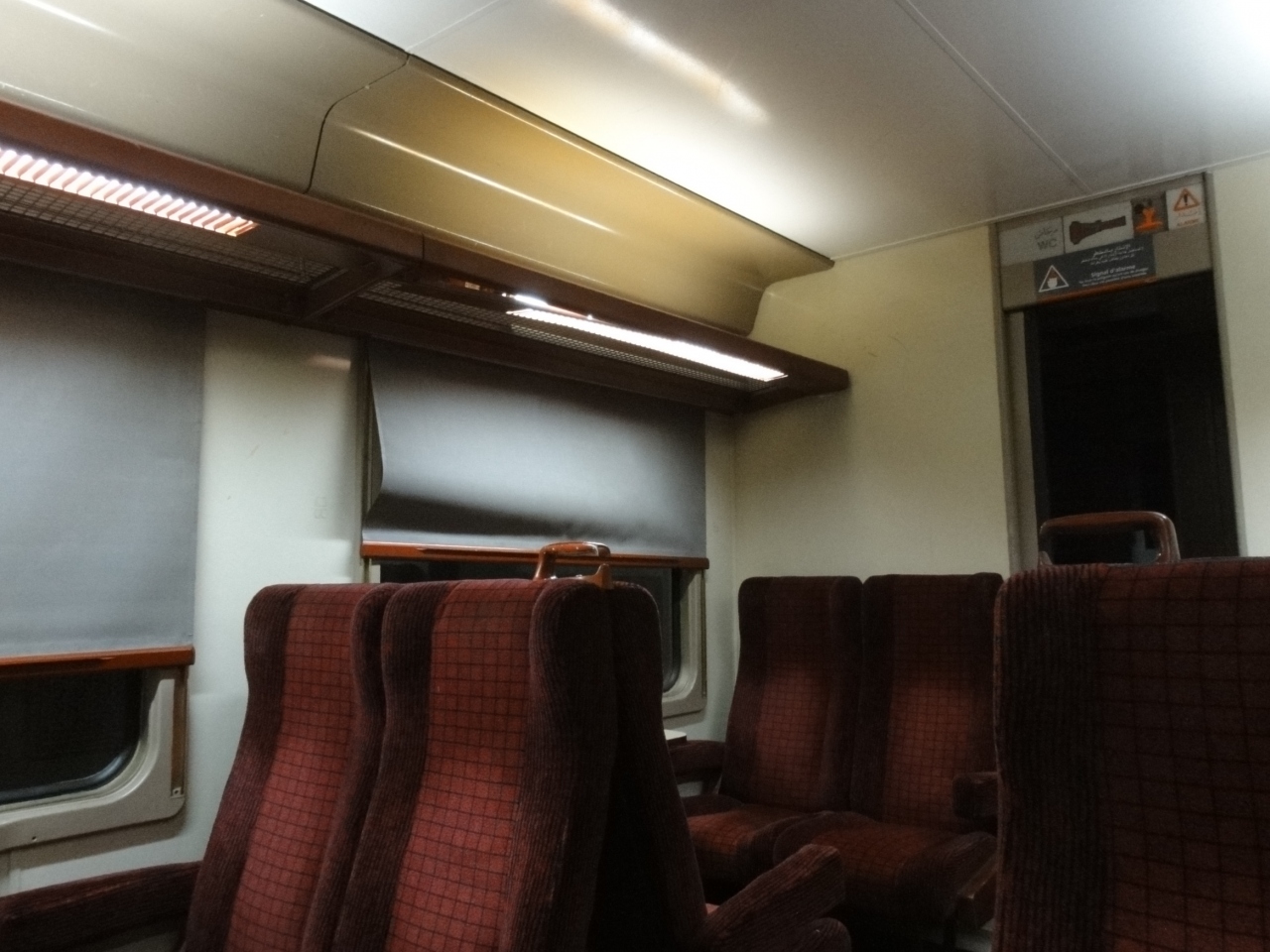 カサ・ヴォワジャー駅で1時間位乗り継ぎ時間があったので、駅前のホテルのカフェでカフェオレとパンオショコラを食べながら時間をつぶしました。列車は時間どおりだし、席はゆったりしていて長時間の移動もさほど辛くはなかったです。1等の座席指定に乗りましたが自分の席が分かりにくかった。