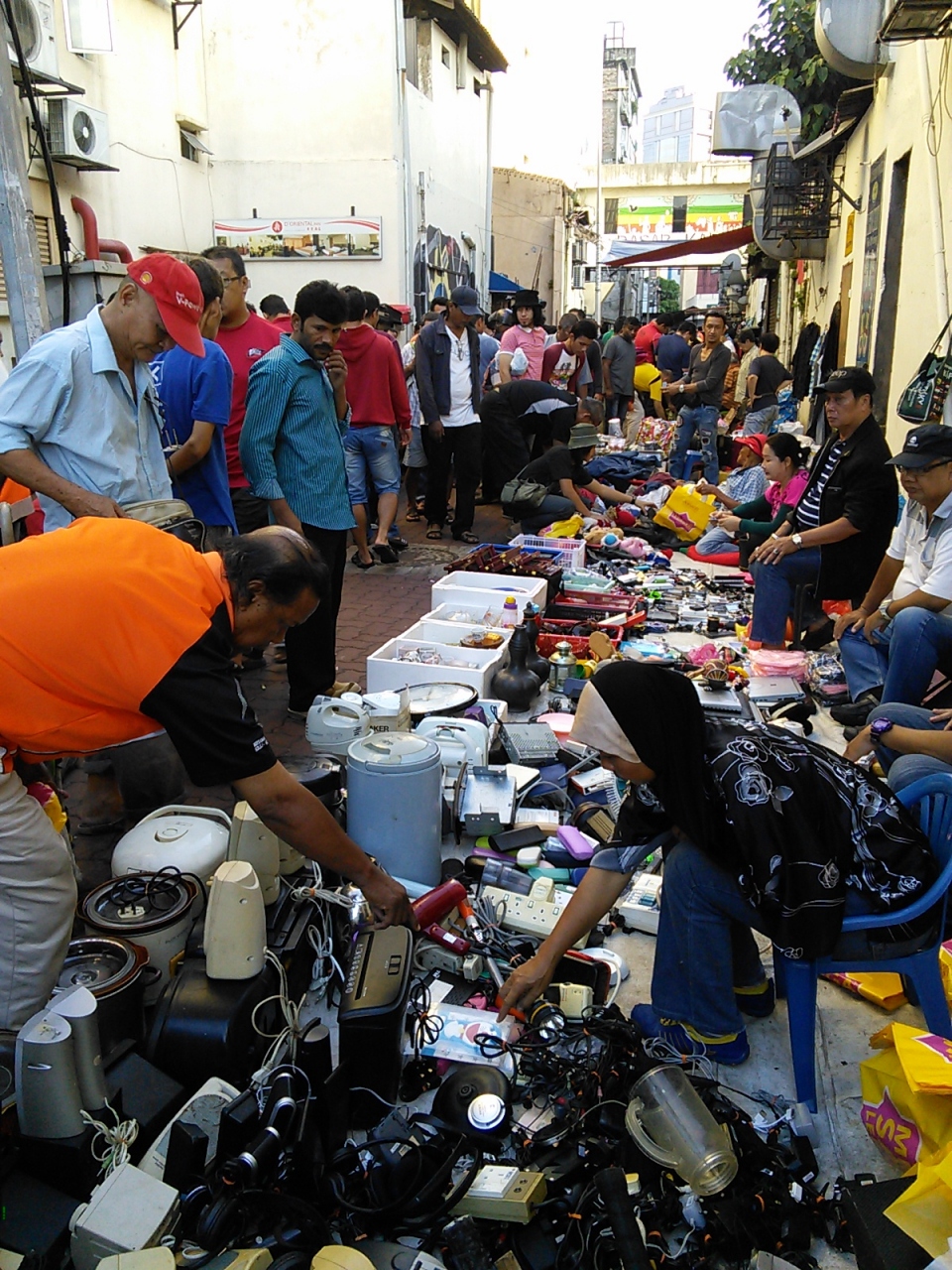 チャイナタウンのスルタン通りとその1本西側の狭い路地で毎朝開かれる路上マーケット。フリーマーケットのようでもありますが実体は“ガラクタ市”の類いです。古着、シューズ、携帯電話、各種コード類、おもちゃ、古銭、DVD、工具など。ちゃんとしていそうな物からただのゴミ?までずらりと露店が並んでいます。買い物客や見物客も多く朝から賑わっています。ピークは8:00頃でしょうか。雨が降っているときは自粛する店もありますのでご注意を。早起きして行ってみて下さい。