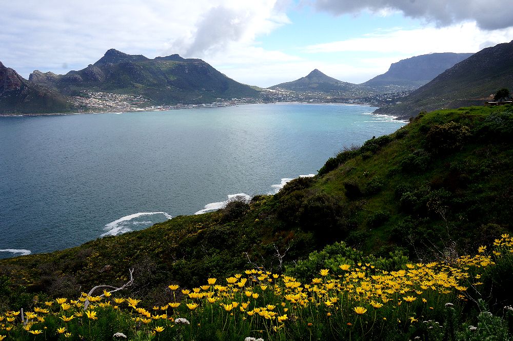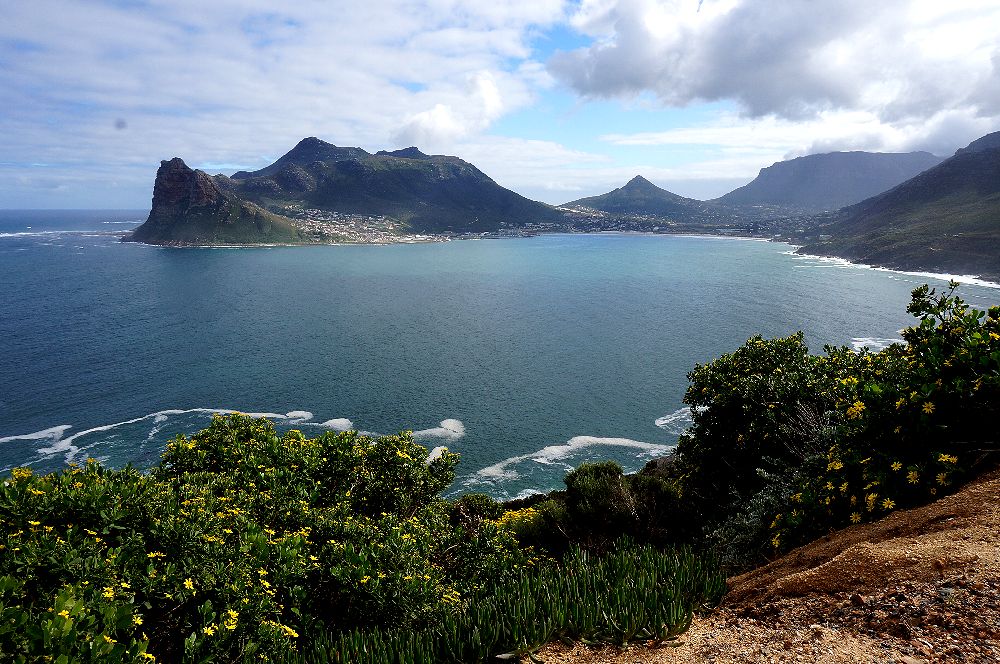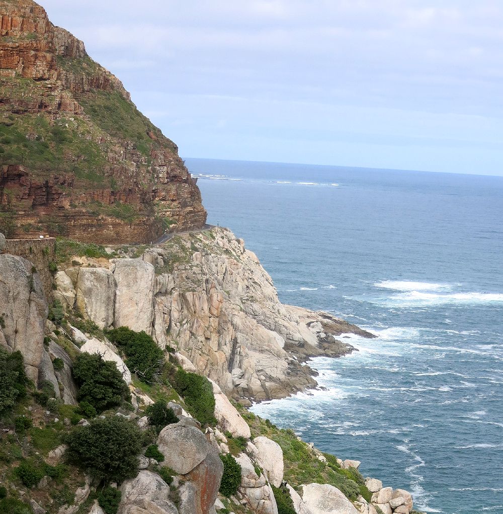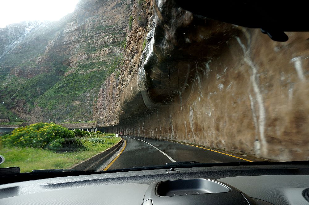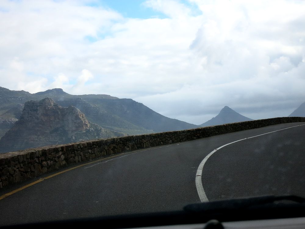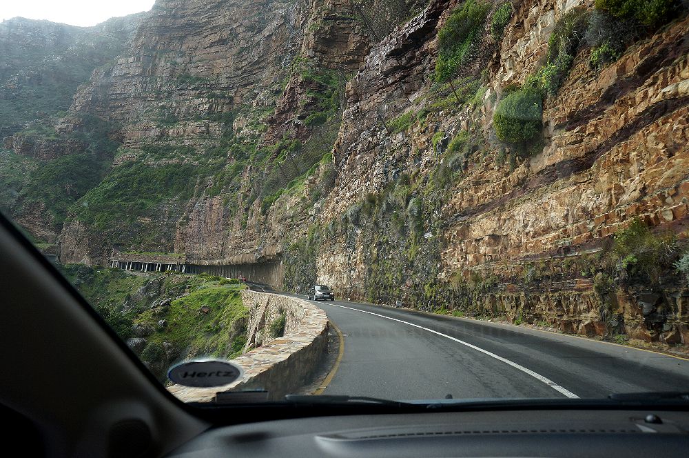 2013年の8月下旬、喜望峰を見学した翌日の朝に、サイモンズタウンから北上してチャップマンズピークドライブを南から北に走り抜けました。左側通行なので海側を走ることになり、絶えず美しい海岸風景を車窓から眺めることができました。最初はチャップマンズベイの展望が左手に広がり、後半はハウトベイを眺めながらの快適なドライブが楽しめます。道幅はやや狭く、上には崖がひさしのように覆いかぶさっているので、かなり圧迫感がありますが、車の通行はそれほど多くないので、イタリアのアマルフィ海岸よりはずっと走りやすい道でした。道のところどころには駐車スペースも用意されているので、車を止めて美しい海岸風景を十分楽しむことができました。ハウトベイから入って北から走ると、崖側を走ってしまうので、ぜひ南から北に走ることをお勧めします。