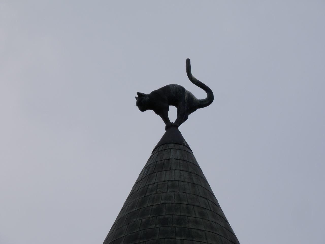 黒猫の像が取り付けられています。
