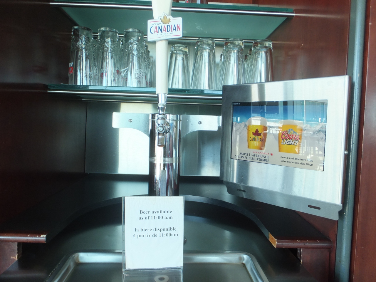 カナダ国内の空港にあるラウンジ。カナダ航空のラウンジで、私はバンクーバーで利用しました。明るく、清潔感あふれるラウンジでした。11時前に利用したところ、ちょうど11時で食事メニューが入れ替わるところでした。昼食はサンドイッチやラザニアなど。ちなみにビールも11時からで、さすがカナダ、カナディアンビールでした。アメリカ同様、夏はかなり冷房が効いていますので、羽織るものを持っていったほうがよいと思います。
