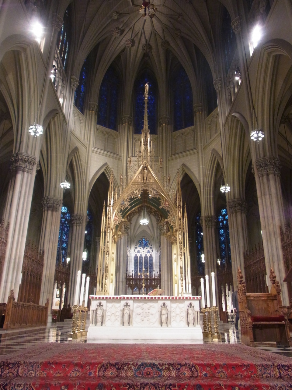 ロックフェラー・センターの近くにある大きな教会で、近代的な高層ビル群のなかにこんな荘厳なゴシック様式の教会があることに驚きました。全米最大のカトリック教会だそうで、ロウソクが灯されてとても静か。ニューヨークのど真ん中に居るのを忘れてしまうほどでした。ステンドガラスの装飾も印象的でした。