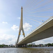 チャオプラヤ川を船で下りながら、観光をすることにしました。綺麗な姿のラマ8世橋を近くで見ようと思い、観光船の発着する駅から更に上流から乗ることにしました。橋のたもとには、駅はなく、橋の下を通り抜けるなら、THEWES PIER という駅に行く必要があります。地図などを指示して、タクシーに乗った方が良いと思います。