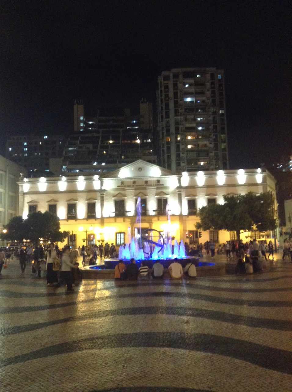 ライトアップされた噴水とポルトガル風の建物を見てしばし異国気分の満喫しました。