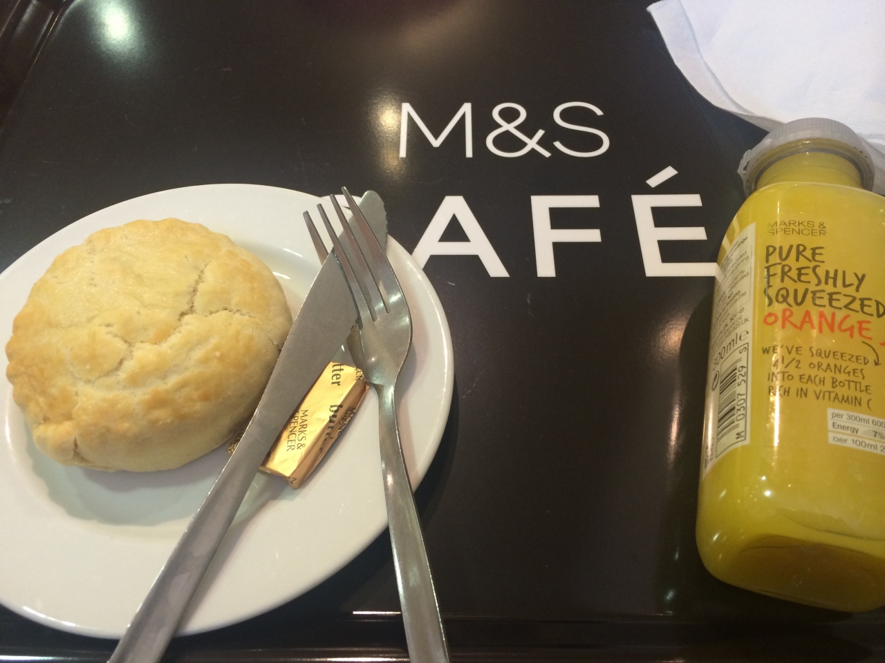 2階か3階には、M&S Cafeがあり、飲み物やスコーンやスナックが購入してゆっくりできます。
