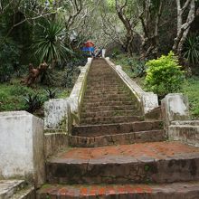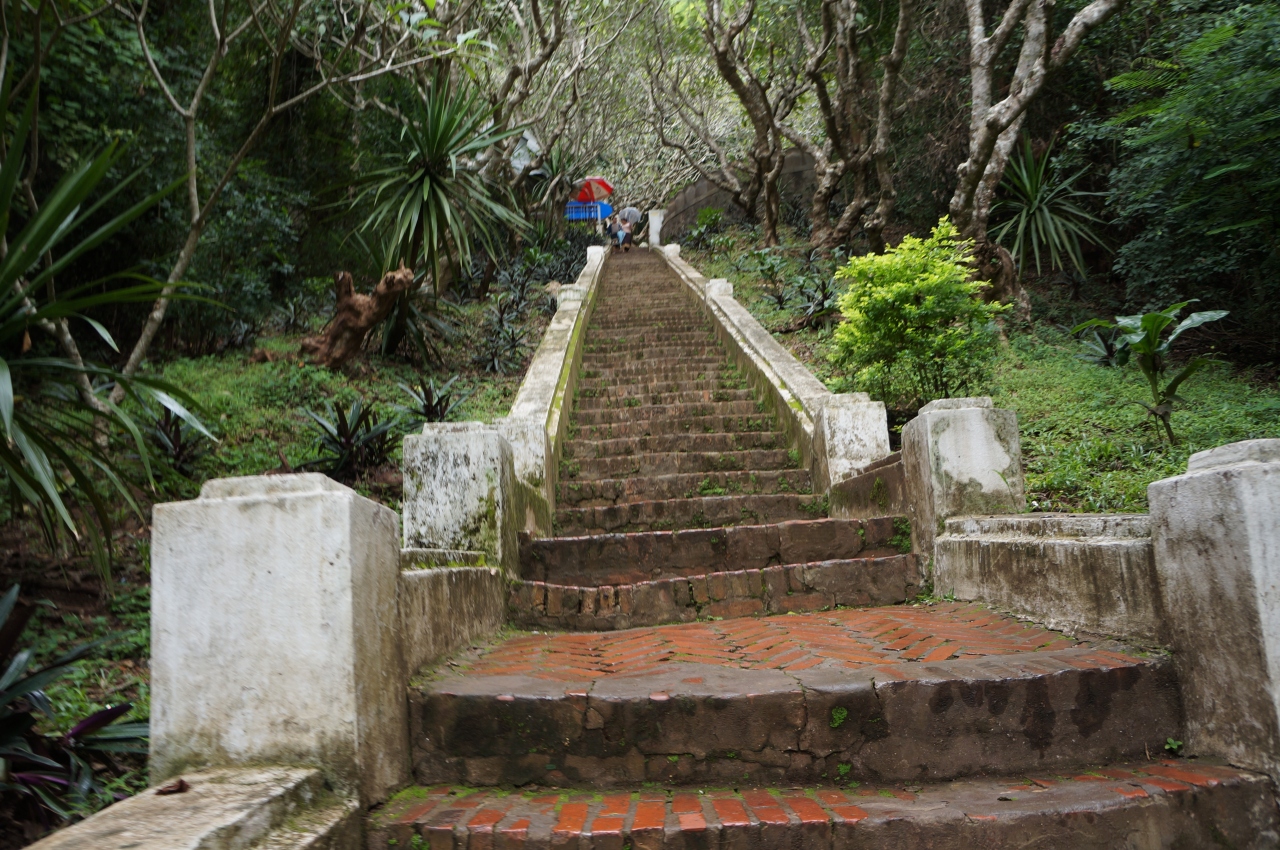 ルアンパバン全体が見渡せてとてもよい眺め。道路に入場門が面しているわけでもないため、確かに微妙にわかりにくい位置に入口があります。景色は確かに素晴らしいけれど雨季の時期に行ったのが運のつきですね。やっぱり晴れてないとこういう景色はよくみえません。
