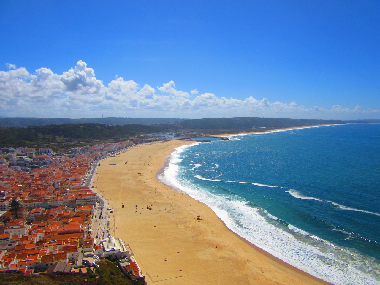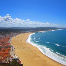 ここからザ・ナザレ!!という景色、三日月型のビーチの写真を撮ることができます。