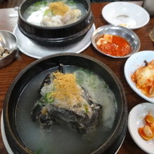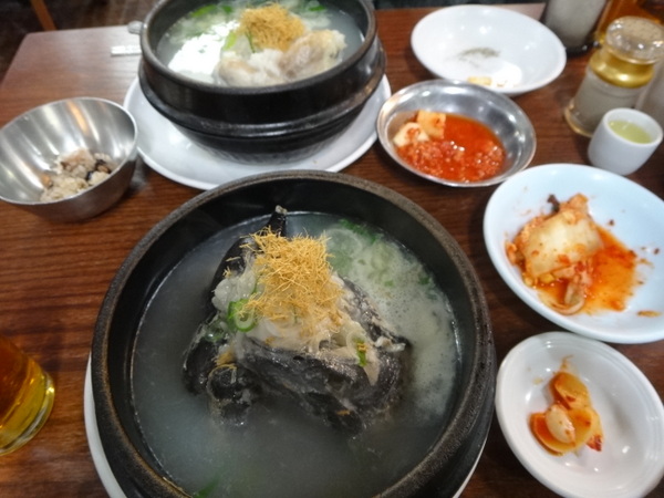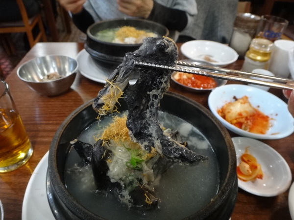 前回普通の参鶏湯にしたので、今回は参鶏湯の烏骨鶏バージョン、オゴルゲタンを注文、更に山参もトッピングして、25000ウォンの一番栄養価が高いやつにしました。