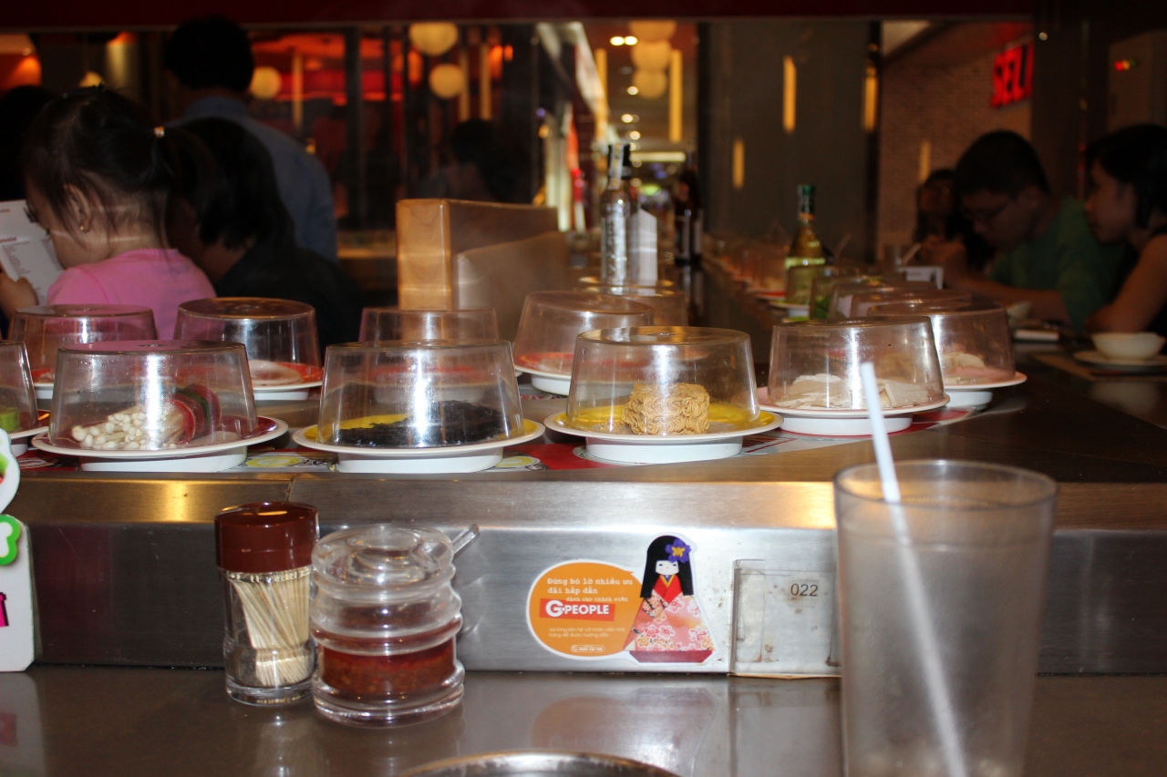 回っているものは寿司ではなくて魚やお肉、麺など何と鍋の具材です!一人一つ鍋があるので、自分で好きなものを好きなだけ食べることができます。それプラスちょっとしたビュッフェコーナーもあります。とてもおいしいというわけではないですが、ベトナム独特のおもしろいレストランを楽しむことができました。
